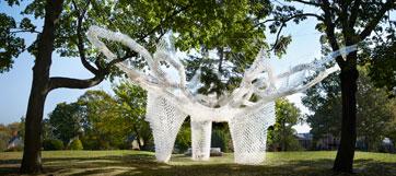 The Pavilion was the winning submission for the City of Dreams Pavilion design competition, and was on display on Governors Island for the duration of the 2014 summer. CDR Studio was able to bring together a robust design team, a troop of 100+ volunteers, and numerous other support to help them bring their vision to reality. The result of this far-reaching team work was an innovative pavilion located in one of New York’s most unique public spaces. Governor’s Cup formed a place for gathering, interaction, and performance. It was a playground for kids and adults.