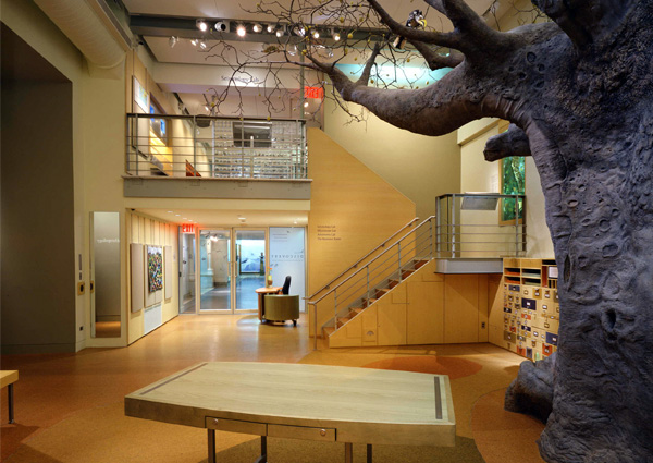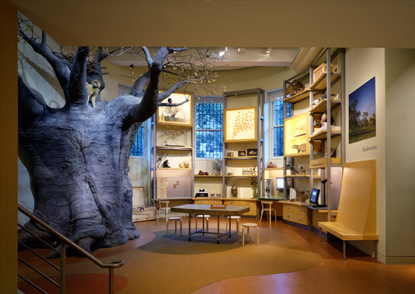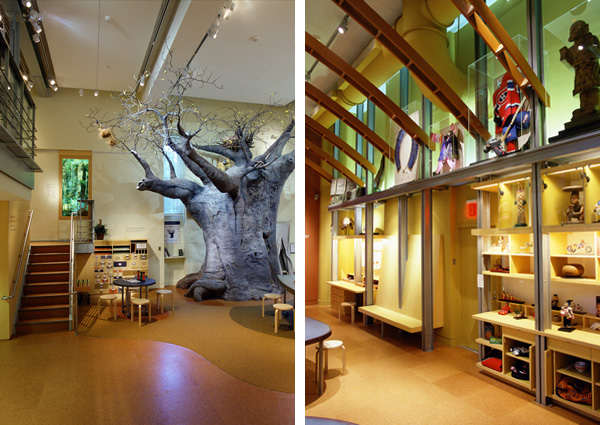 The main level is primarily organized as object-based learning for children 3 to 10 years of age; the mezzanine is also object-based, with advanced technological tools aimed at children 10 years of age and older. Knitted together from disparate spaces, the design creates an intimate and carefully choreographed learning experience within the large complex of the museum.
